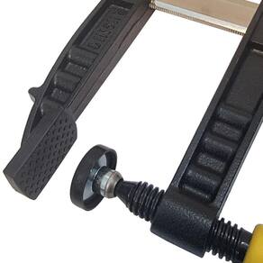 Com a capacidade de aperto rápido ou fixação de peças, montagem de móveis, processos de colagem e muito mais, este grampo sargento possui abertura autoajustável, o que agiliza o trabalho. Suas bordas de aperto emborrachadas ajudam a não danificar a peça que será fixada.