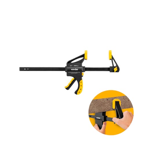 Produzido em plástico rígido ABS de alta resistência. Possui sistema de aperta rápido, proporcionando praticidade na aplicação. Ideal para fixar peças em processos de colagem, fixação, montagem de móveis, carpintaria, entre outros. Não utilizar para sustentação.