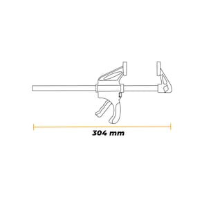 Capacidade máxima de abertura: 12" - 304 mm Material da haste do grampo: Metal Material do cabo do grampo: Plástico Massa aproximada (peso): 730 kg Código de fabrica: 35.80.619.012