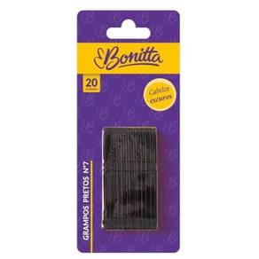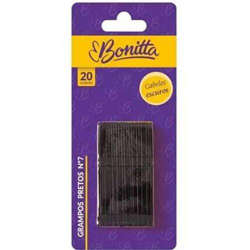 Cartela com grampos de cabelo nº 7 na cor preta Recomendado para todos os tipos de cabelos escuros Os grampos podem ser utilizados no dia-a-dia, são versáteis e podem ser utilizados em diversos tipos de penteados Embalagem pequena e fácil de carregar na bolsa Contém 20 unidades