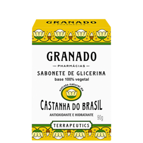 Sabonete em barra para todos os tipos de pele. Limpa delicadamente o corpo proporcionando hidratação, maciez e toque aveludado. Granado Terrapeutics Castanha do Brasil Sabonete de Glicerina é um hidratante natural, com base 100% vegetal, que tem propriedades antioxidantes e tonificantes.