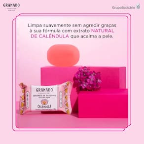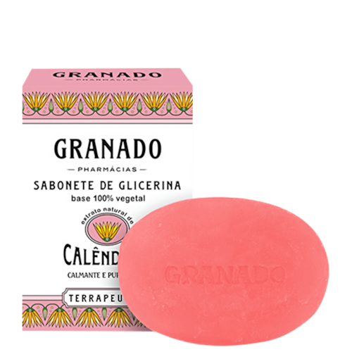 Sabonete em barra para todos os tipos de pele. Limpa delicadamente o corpo proporcionando hidratação, maciez e toque aveludado. Granado Terrapeutics Calêndula Sabonete de Glicerina é um hidratante natural, com base 100% vegetal, que tem propriedades calmantes e purificantes.
