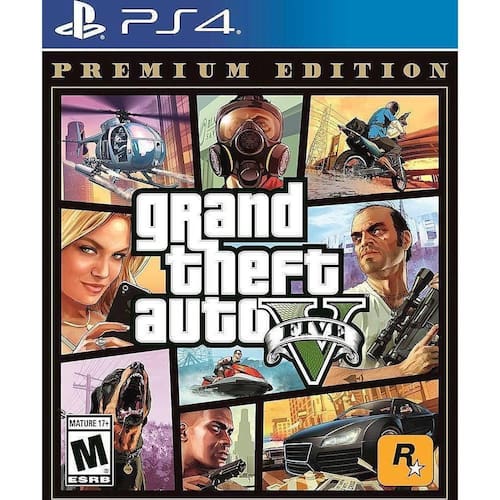 Especificações técnicas: Edition, Premium Edition, Especificações técnicas: ESRB, M (Mature 17 +), Especificações técnicas: ESRB Descritores, sangue e gore, violência intensa, humor maduro, , linguagem forte, conteúdo forte, uso de e álcool, Especificações técnicas: ESRB Elementos interativos, In-Game Compras, os usuários interagem, Especificações técnicas: Plataforma Compatível (s), 4, 5, Especificações técnicas: Format Software, Física, Nome do produto, Grand Theft Auto V, Marca a Rockstar Games, Publisher, a Rockstar Games, Developer, Rockstar North, número do modelo 57032, Detalhes Jogo, Edition, premium Edition, detalhes do jogo, Gênero, ação e aventura, Detalhes do Jogo, franquia de jogos , Grand Theft Auto, detalhes do jogo, Game Series, V, Detalhes do Jogo, Multiplayer, sim, Certificações e resultados, ESRB, M (Mature 17 +), Certificações e Listas, ESRB Descritores, sangue e gore, violência intensa, humor Mature , , linguagem forte, conteúdo forte, uso de e álcool, Certificações e listagens, ESRB Elementos interativos, In-Ga me Compras, os usuários interagem, compatibilidade, suportados por plataforma (s), 4, 5, compatibilidade, formato de software, físicas Requisitos, Video Game conteúdo incluído, jogo completa, UPC, 710425570322
