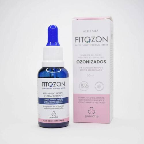 Grandha Oleo Ozonizado Cuidado Intimo e Afrodisiaco Fitozon F5 30ml Fitozon F5 é uma delicada sinergia com notável capacidade de melhora da lubrificação, do aporte sanguíneo e da preservação do pH da região íntima. Estimula as melhores sensações e os impulsos sexuais, valorizando a intimidade e o bem-estar. Óleo de Girassol Ozonizado Óleo Vegetal Preservado de Menta Óleo Vegetal Preservado de Avelã Óleo Essencial de Cânfora Óleo Essencial de Gengibre Óleo Essencial de Hortelã Pimenta
