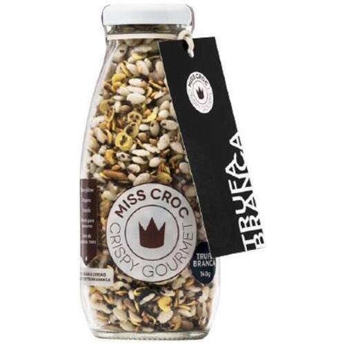 Granola Crispy Trufa Branca Sem Glúten Garrafa 140G O Crisp Trufa Branca harmoniza com: carpaccio, cremes, saladas, peixes e legumes. Ótimo para finalizar pratos com ovos mexidos, poché, fritos e queijos de sua preferência. Ele é certificado pela Sociedade Vegetariana Brasileira e BDK Kosher Parve . Peso: 140G Ean: 7899765100529