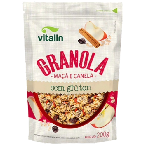 Super crocante e saborosa, a Granola Maçã e Canela Sem Glúten Vitalin é ideal para o café da manhã ou lanche e também podem ser acrescentadas em preparações como bolos, tortas ou sobremesas.