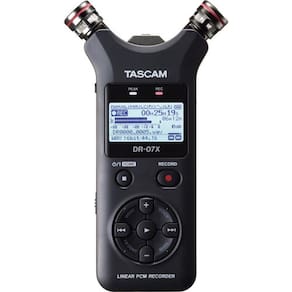 Para aplicativos de gravação de voz, efeitos sonoros e música ao vivo, o gravador de mão portátil Tascam DR-07X é capaz de capturar duas faixas de áudio de alta resolução sem a necessidade de microfones externos. Seus microfones condensadores unidirecionais integrados podem ser configurados na posição A-B para um efeito estéreo espaçoso ou na posição X-Y para uma imagem estéreo compacta com diferenças mínimas de fase. Igualmente habilitado como dispositivo portátil ou em configurações montadas na câmera ou no suporte, o DR-07X pode lidar com qualquer coisa, desde sessões de amostragem e recitais até entrevistas e podcasts.