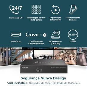 Gravador de video de rede 16 canais tp-link vigi nvr1016h Gravação contínua 24 horas por dia, 7 dias por semana: armazena automaticamente até 10 tb de imagens de câmeras conectadas para proteger seus dados para acesso rápido e conveniente.