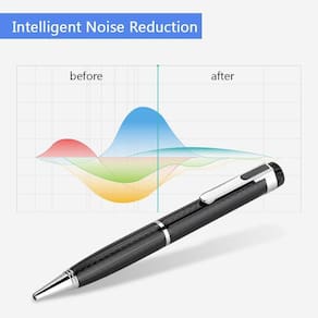 Forma da caneta: A aparência da caneta faz com que pareça uma caneta real, o que é difícil de perceber. Gravação de 10 horas - Para gravar sons por 10 horas continuamente. Redução Inteligente de Ruído: Alta taxa de bits de gravação de até 192kbps e gravação independente tornam as vozes gravadas super claras.