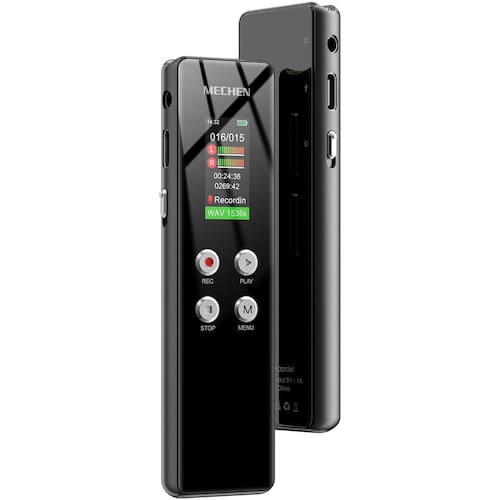 - Ativado por voz com gravação cronometrada: o dispositivo gravador de voz MECHEN inicia automaticamente a gravação quando o ambiente atinge o nível de decibéis definido e interrompe a gravação quando não há som, eliminando lacunas silenciosas e economizando espaço de armazenamento. O gravador ativado por voz também salva automaticamente suas gravações de áudio quando a bateria está fraca, garantindo que você nunca perca nenhum momento importante.