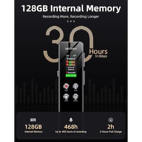 - Gravador de voz digital de 128 GB: 128 GB de memória permitem gravar até 542 horas (gravação wav 512 kbps) ou 40.000 músicas e até 22 horas de gravação contínua com carga total. O formato de gravação pode ser predefinido para wav 512kbps, 1024kbps ou 1536kbps. É um dispositivo de gravação profissional para todas as suas necessidades de gravação!