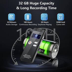 - ?Bateria de longa duração? O gravador de som pode gravar até 100 horas (32 kbps) continuamente, adequado para gravação de longo tempo. Economize automaticamente quando a bateria estiver fraca, para que você não precise se preocupar com o desligamento do gravador no meio da gravação.