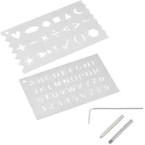 1 Gravador elétrico, acompanha: 1 placa (algarismo e alfabeto), 1 placa (símbolos), 2 pontas e 1 chave allen