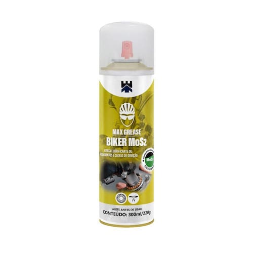 Max Grease Biker MoS2 é uma graxa lubrificante de alta performance a base de sabão de lítio e bissulfeto de molibdênio. Sua formulação possui características de resistência à água, estabilidade térmica e inibição de ferrugem. Indicada para a lubrificação de rolamentos e caixas de direção. Sua aplicação auxilia na conservação, aumentando a vida útil dos componentes lubrificados.