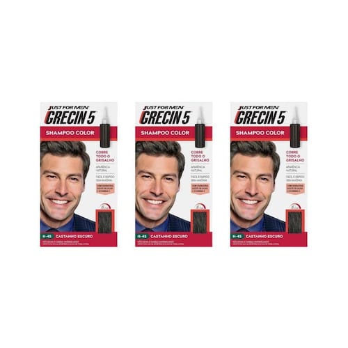 Grecin é um tonalizante para cabelos masculinos que oferece excelente cobertura dos fios grisalhos. É o tonalizante ideal para realçar a cor dos cabelos, mantendo-se fiel ao seu próprio estilo. E, ainda, grecin 5 é enriquecido com ativos hidratantes queratina, azeite de oliva e vitamina e , que ajudam a deixar os fios mais macios e maleáveis. E não se preocupe: a cor não desbota e dura até os grisalhos voltarem a crescer. Sem adição de amônia. Modo de usar Usando as luvas, misture a base colorante no ativador, e corte a ponta do aplicador. Agite bem para ter uma boa mistura. Em seguida, aplique nos cabelos secos e não lavados, começando onde os cabelos são mais grisalhos. Cubra todo o cabelo com o produto, massageando suavemente. Aguarde 5 minutos e enxágue abundantemente com shampoo. advertências e orientações leia as instruções de uso e recomendações que acompanham o produto. é importante fazer a prova de toque 48 horas antes do uso do produto. não utilizar em caso de irritação, sensibilidade, lesão ou algum tipo de erupção na pele. não recomendado para pessoas que já apresentaram alguma reação alérgica a esse ou a qualquer outro produto de coloração capilar. não recomendado para pessoas que já tiveram reação alérgica a uma tatuagem temporária de henna no passado. uso externo. não ingerir. caso haja contato com os olhos, lave-os abundantemente. se houver irritação, suspenda o uso imediatamente e procure orientação médica. mantenha fora do alcance das crianças.