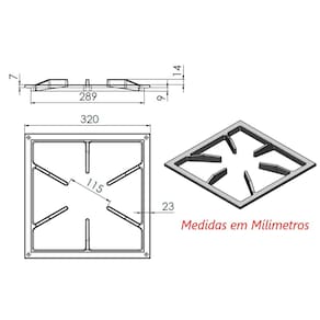 01 Grelha 6 Hastes GSP Fogão Industrial Ferro Fundido 30x30cm.