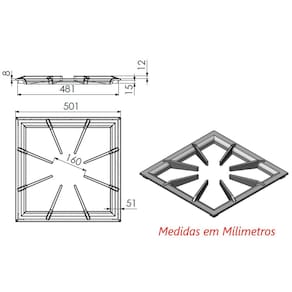 Grelha 8 Hastes Reforçada GLC Fogão Industrial Ferro 50x50cm