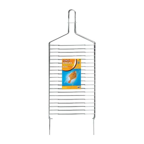 Grelha Abaulada Dupla Grande Cromada 83X28CmEste produto é ótimo para assar carnes, peixes, etc.. Ele tem uma trava para não correr ou abrir quando estiver assando. Carnes como Peixes, asinhas de frango, linguiças, vão ficar muito mais saborosos, pois está grelha não perfura a carne mantendo a gordura e cozinhando melhor. Possui 2 partes e uma presilha para segurar.Tamanho: 83X28CmCor: Prata