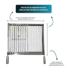 Estrutura reforçada em chapas de aço inox, soldadas à dois ferros maciços tarugos de 1/4 em inox que ajuda reforçar a grelha.