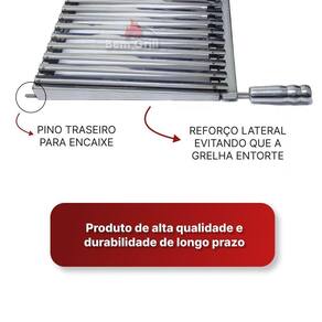 Grelha Argentina Parrilla fabricada em aço inox, lateral fechada que aumenta a resistência da grelha não entortando com peso e calor.