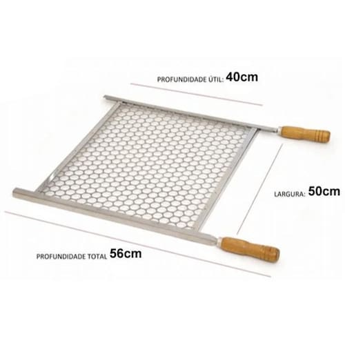 Tamanho Comprimento somente da grelha: 40cm Comprimento total grelha com cabo: 56cm Largura: 50cm