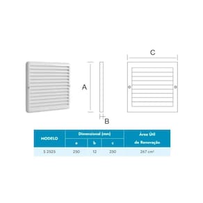 Grelha Com Tela Anti-Inseto Para Saída De Ar 25X25Cm Sicflux. A grelha com tela anti-inseto para saída de ar da Sicflux é perfeita para diversos locais onde é necessária uma grelha de acabamento. Com fácil limpeza e manutenção, ela pode ser instalada tanto no teto quanto na parede. Fabricada em plástico ABS + anti-UV, garante resistência às intempéries. Modelo S2525, cor branca. Conteúdo da embalagem: 01 grelha de superfície com tela anti-inseto para saída de ar. Ean: 7898904388873
