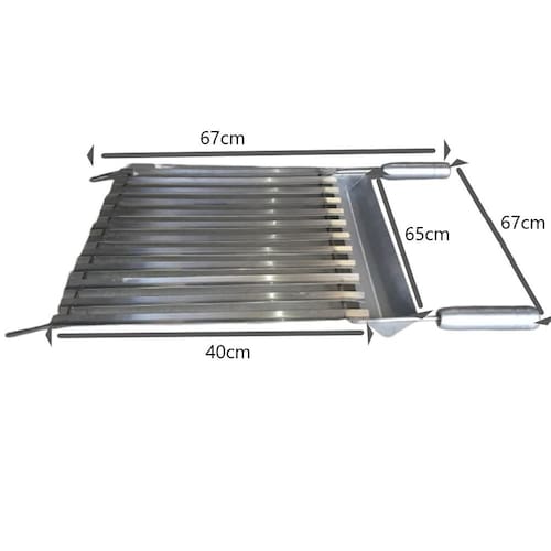 A grelha argentina é constituída por canaletas, normalmente no formato V e possui leve inclinação que evita que a gordura ou sumo da carne entrem em contato com o fogo e cause labaredas. Logo, é possível assar a carne bem próximo ao fogo.