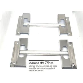 Observações: Verifique o espaço da sua churrasqueira, profundidade e largura, pois não trocamos, somente devolução. As barras atendem churrasqueiras até 75cm, sendo menor poderá serrá-las. Os suportes das barras podem ser fixados vertical ou horizontal nas paredes da churrasqueira.