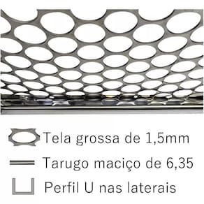 Grelha Inox Moeda 55x40 Com Descanso A grelha moeda 100% inox é perfeita para fazer seu churrasco com bifes, linguiças , aves, costela, pão, legumes e tudo mais o que quiser assar na grelha.Pode ser utilizada direto para o preparo de assados ou para descanso dos alimentos preparados.Serve em churrasqueiras de alvenaria com furos para apoio pois possui pontas para apoiar nos tijolos , em suportes de vidro, ou qualquer apoio de grelha e também em churrasqueiras portáteis.A Tela e estrutura são em Inox e por isso não enferrujam, material de qualidade proporcionando alta durabilidade.Os cabos são térmicos confeccionados em madeira revestidos de alumínio, não esquentam.