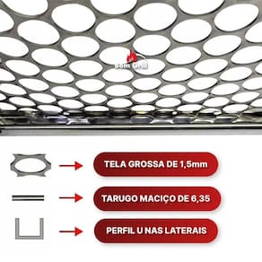 Serve em churrasqueiras de alvenaria com furos para apoio pois possui pontas para apoiar nos tijolos , em suportes de vidro, ou qualquer apoio de grelha e também em churrasqueiras portáteis.