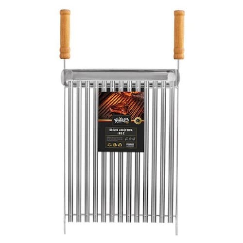 Maravilhosa grelha Parrilla Argentina foi toda produzida em aço inox, material super resistente. Possui cabos de madeira banhado em verniz de alta durabilidade, canaletas em formato V, com leve inclinação e calha removível para facilitar na hora da limpeza. E, tudo isso, pensando exclusivamente em garantir o preparo de um delicioso churrasco para você e seus convidados. Além de tudo isso trata-se de uma linda peça. Dimensões do Produto CxLxA cm : 40cm x 40cm x 5cm. Peso 1,15kg