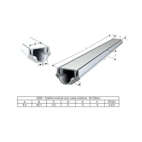 A grelha invisível foi desenvolvida em alumínio fundido para ser um produto mais resistente. Seu design é a solução eficiente e moderna para captação de água, além de proporcionar ao ambiente um acabamento perfeito. O diferencial deste modelo é a caixa coletora que permite a coleta da água pluvial para o reaproveitamento da mesma, preservando o meio ambiente.