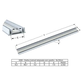 01 Grelha Invisível Oculta Rebaixada com Caixilho Cinza 100x8cm.