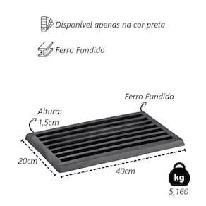 01 Grelha Para Cinzeiro Fogão a Lenha em Ferro Fundido 20x40cm.