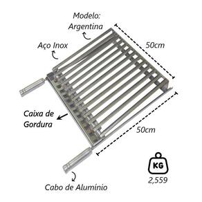 Grelha Parrilha Argentina Aço Inox com Caixa Gordura 50x50cm