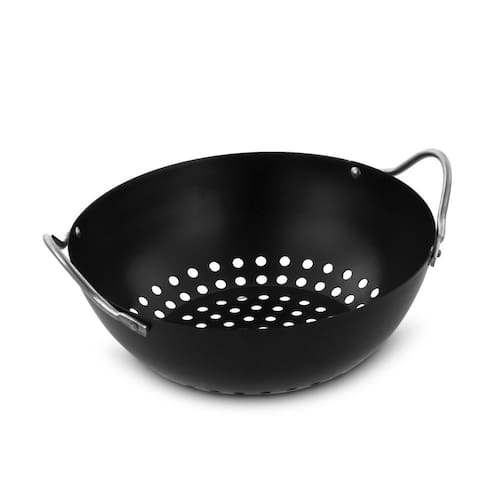 Grelha Perfurada Redonda Funda Para Churrasco 20X10Cm Mimo Style A grelha perfurada redonda funda p churrasco 20x6,5cm Mimo style é uma ferramenta ideal para o churrasco moderno. Cada dia mais os legumes são introduzidos ao cardápio do churrasco. Prepará-los, no entanto, pede um pouco mais de cuidado e novas ferramentas para que seja possível levá-los à churrasqueira sem que caiam na brasa na hora de virá-los. A Grelha redonda funda da Mimo Style permite que você leve à churrasqueira e asse por igual todas as partes dos legumes ao permitir vira-los em segurança. Além disso, suas alças permitem que você sirva os convidados com facilidade. Tudo isso com muita classe e beleza. Siga as instruções de conservação que acompanha o produto. Composição: Metal Cor: Preto Medidas: Diâmetro: 20 cm Largura: 23 cm Altura total: 10 cm Altura da grelha: 6 cm Peso: 330 gramas Ean: 7908216104228