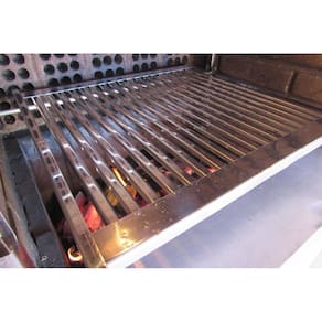 Paletas: canaletas de chapa de inox curvada em formato u, soldada com a cavidade para baixo, superfície do grill plano