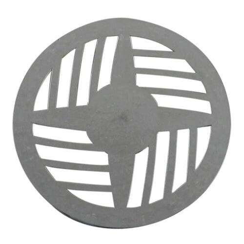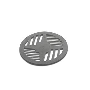 Grelha redonda em ABS cromada com diâmetro de 9,7cm Modelo II. Indicada para banheiros, cozinhas, lavanderias, áreas externas, corredores e caixas sifonadas.