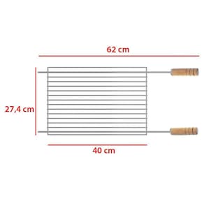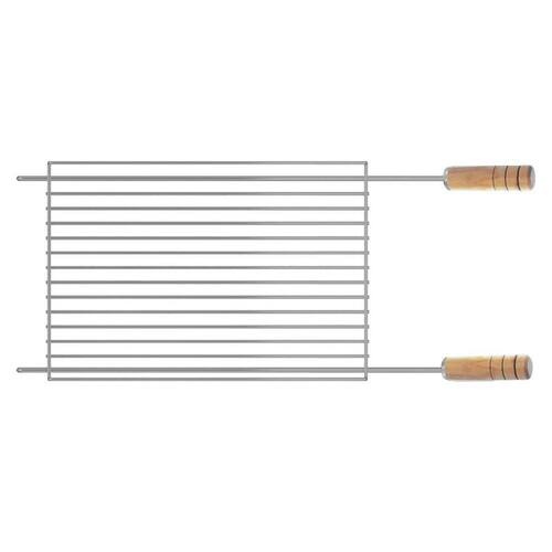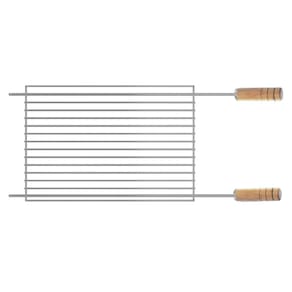 Componente exclusivo para as séries: Kit, Kit Suporte e Garden da Giragrill. Grelha Tradicional de arames da linha Inox, com proteção lateral para grelhar ou deixar espetos de churrasco em descanso na parte superior do kit. Cabos revestidos em alumínio. - Feita em aço inox, com cabos de madeira. - Muito resistente. - Grelha tradicional de arames com proteção lateral para grelhar ou deixar espetos de churrasco em descanso na parte superior do kit. CARACTERÍSTICAS Material: Estrutura em aço inox 304 e cabos de madeira marfim Peso Líquido: 1,52 kg Peso Bruto: 1,95 kg Medidas do Produto: C 62,0 x A 3,7 x P 27,4 cm Medidas da Embalagem: C 63,0 x L 28,0 x A 4,0 cm Ean: 7896569203005