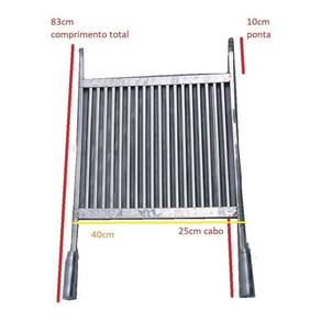 Observações: a grelha pode ter variação na largura de até mm maior e marcas de solda amareladas e ranhuras que fazem parte da fabricação não é defeito, não aceitamos devolução por este motivo . Verifique o espaço do vão de sua churrasqueira antes de comprar