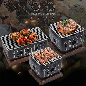 Características em destaque Cor: Preto Estilo: Estilo Art Déco Tipo de combustível: Carvão Material da chapa: Aço Tipo: Japonês/Hibachi Modelo: Churrasqueira a carvão portátil Material: Liga de alumínio+aço inoxidável Veja menos