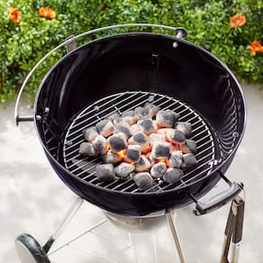 Weber 7441 Grelhas de carvão de substituição, grade de 43 cm para churrasqueira a carvão de 55 cm, aço inoxidável - A grade inferior em uma grelha de carvão cria um espaço entre as aberturas e os carvões, permitindo que o ar chegue aos carvões - Projetado para caber dentro de churrasqueiras de carvão Weber de 56 cm, o carvão fica sobre esta grelha, os alimentos ficam acima em uma grelha de cozimento separada - Serve para um toque, Master Touch, Bar-B-Kettle, Performer - Não é compatível com modelos Smokey Mountain Cooker ou de 45,7 cm - A grade de aço de calibre pesado é de 43 cm - Mede 43 cm de diâmetro - Feito de aço de calibre pesado