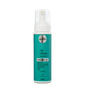 Mousse modeladora para cabelos ondulados, cacheados e crespos. Griffus G-Pró Cachos Espetaculares hidrata e define perfeitamente os fios.