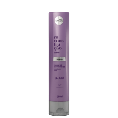 O Shampoo Griffus G-Pró Reconstrução Incrível conta com tecnologia Prodew 500®, que promove fortalecimento da estrutura capilar, garante brilho, protege a cor e oferece maciez aos cabelos.