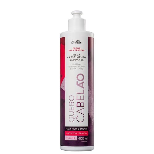 O Creme de Pentear Griffus Quero Cabelão contém filtro solar, proteção térmica e ativos poderosos em sua fórmula. Proporciona um desembaraço suave, além de tratar a queda e fortificar o cabelo.