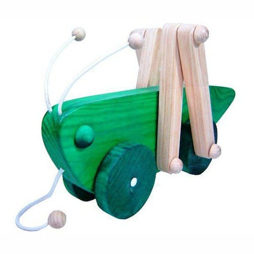 Grigrilo Articulado de Puxar - Madeira - Verde- Bohney Lindo Grilo para puxar de madeira, imita o andar do inseto, ao ser puxado as pernas fazem movimento para frente e para trás típico do grilo ao caminhar. Fabricado em Madeira maciça de reflorestamento e pintado com anilina verde. Desenvolve e estimula a coordenação motora, e auxilia no andar da criança. Excelente acabamento Ref: pa173 Medidas do Grilo 42x22x15 cm. Idade: a partir de 2 anos. INMETRO CE-BRI/IQB-3756 NM 300/2002