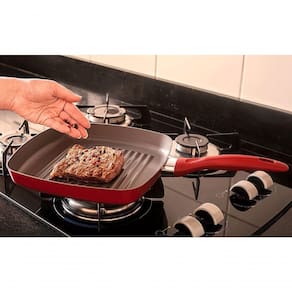 Descrição 1000 caracteres - Sucesso com praticidade e estilo na sua cozinha com o Grill Easy Brinox 24cm 1,35L Ceramic Life com Mineral Resist Antiaderente 3 camadas, vermelho para grelhar carnes e legumes. Seu revestimento com 3 camadas possui resistência extra ao uso em altas temperaturas. O antiaderente é livre de PFOA, metais pesados e elementos químicos prejudiciais à saúde, exige menos óleo no preparo das refeições, não gruda e é mais fácil de limpar. O Grill de alta qualidade, possui clássicação A no Inmetro, garantindo muita durabilidade mesmo com uso constante. Seu formato quadrado e estrutura em formato em onda é ideal para todos os tipos de grelhados desde os mais resistens quanto os delicados como legumes e frutos do mar. Prático e multifuncional, pode ser utilizado em fogão à gás (comum), vitrocerâmico e elétrico.