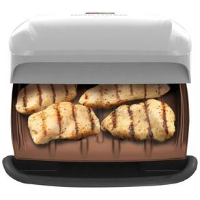 Grill George Foreman para 4 porções, com revestimento antiaderente George Tough aprimorado e ângulo de cozimento ajustável.Termostato regulável