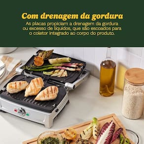 Compacto, funcional e com acabamento em aço inox, o Grill Compacto Cuisinart combina perfeitamente com cozinhas modernas e otimiza o espaco sem abrir mao da performance.Termostato regulável