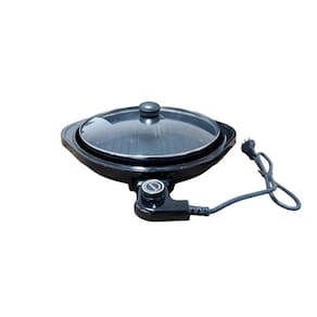 Design moderno e compacto, formato redondo de 40 cm de diâmetro. Superfície antiaderente. Bandeja coletora de gordura com água. Controle de temperatura ajustável.Termostato regulável